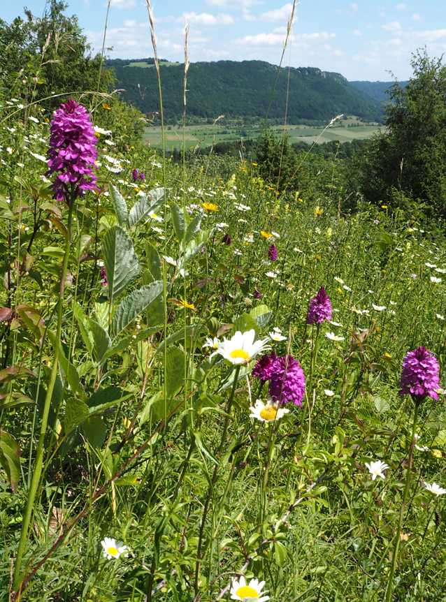 Charakterart der kollinen Mesobrometen. Kalk-Magerrasen, Trocken- und Habtrockenrasen, Raine und Böschungen, auch in Moorwiesen, mäßig trockene, kalkreiche, milde, humose, lockere, ± steinige Löß- und Lehmböden.